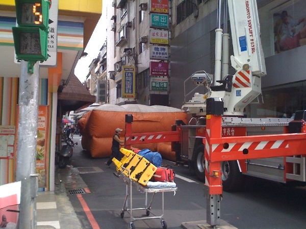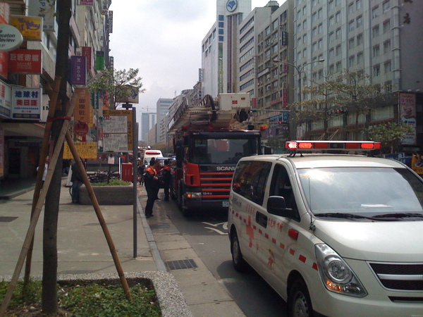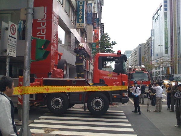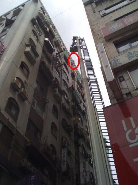 時候發現有消防車呼嘯而過,而且就在我的正前方停下來。本著好奇的精神,我停下車一探究竟,結果定睛一看不是失火,竟然是有女子要跳樓。話說這場面電視上