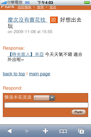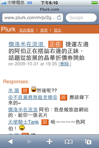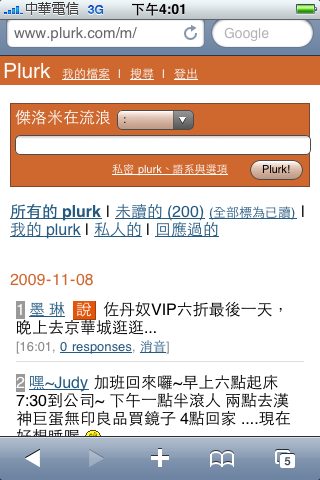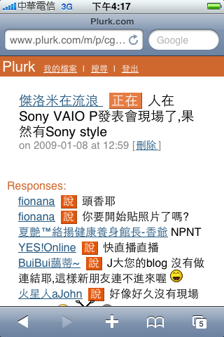 記得我第一次跟雅琴姐見面討論微網誌行銷論壇的時候,雅琴姐跟我提到她每天早上都用手機噗浪,但很慢很慢,請我跟Alvin反應一下。大多數人跟雅琴姐一樣,用手機上噗浪還是打plurk.com的網址。
