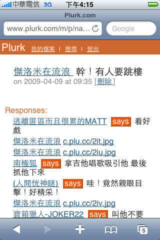 手機版的網頁(plurk.com/m)其實Loading很小,因為沒有那些CSS背景、圖檔、影片呀,追起來很暢快呀,反正有些重要的訊息回電腦再看就好了。